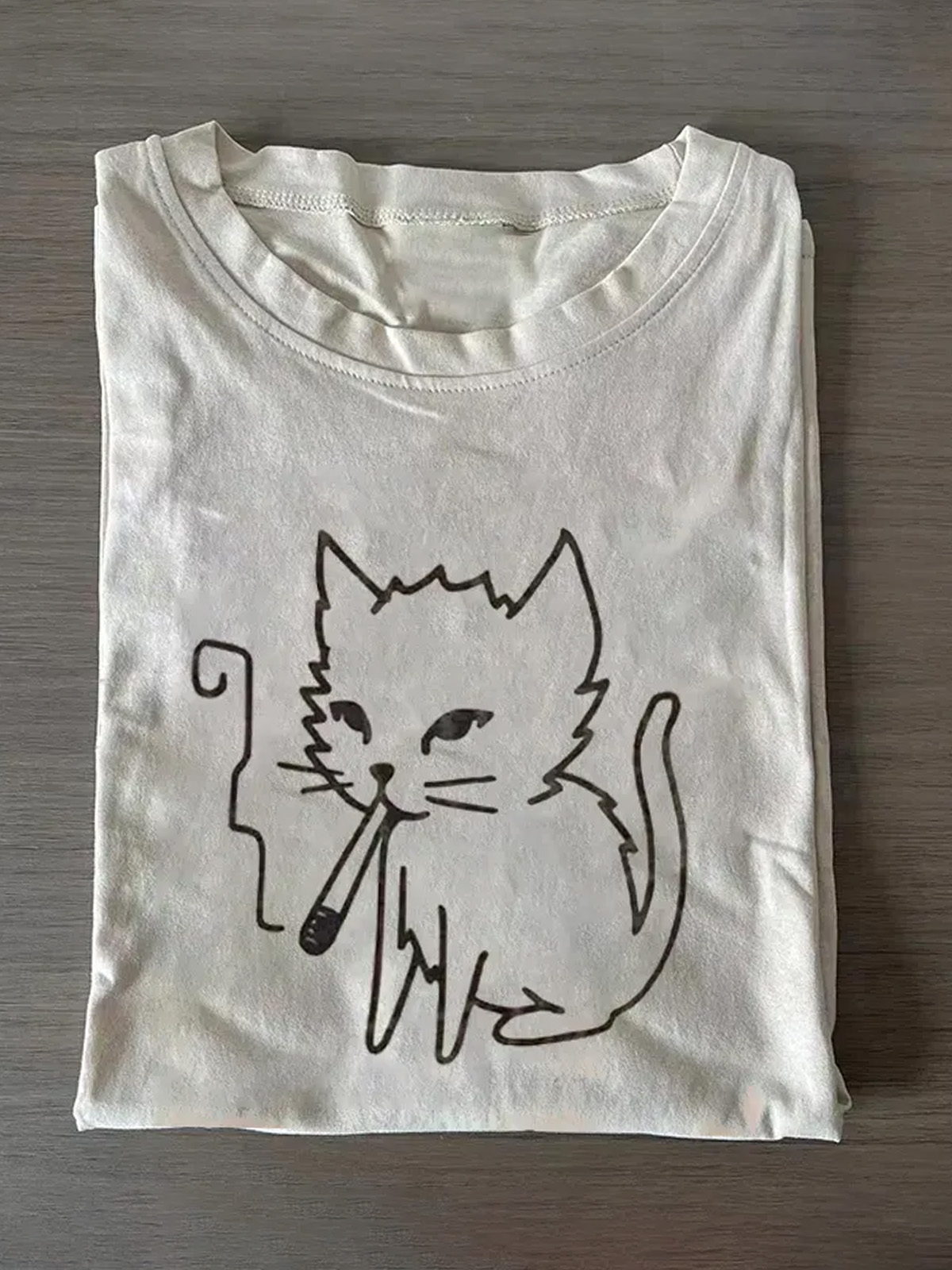 Minimalist Line Cat Cotton Short-sleeved T-shirt