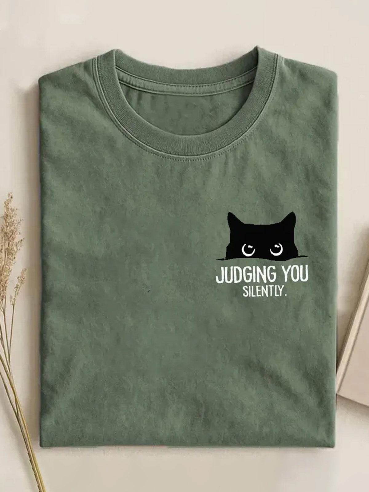Judging You Silently Black Cat Cotton Short Sleeve T-shirt