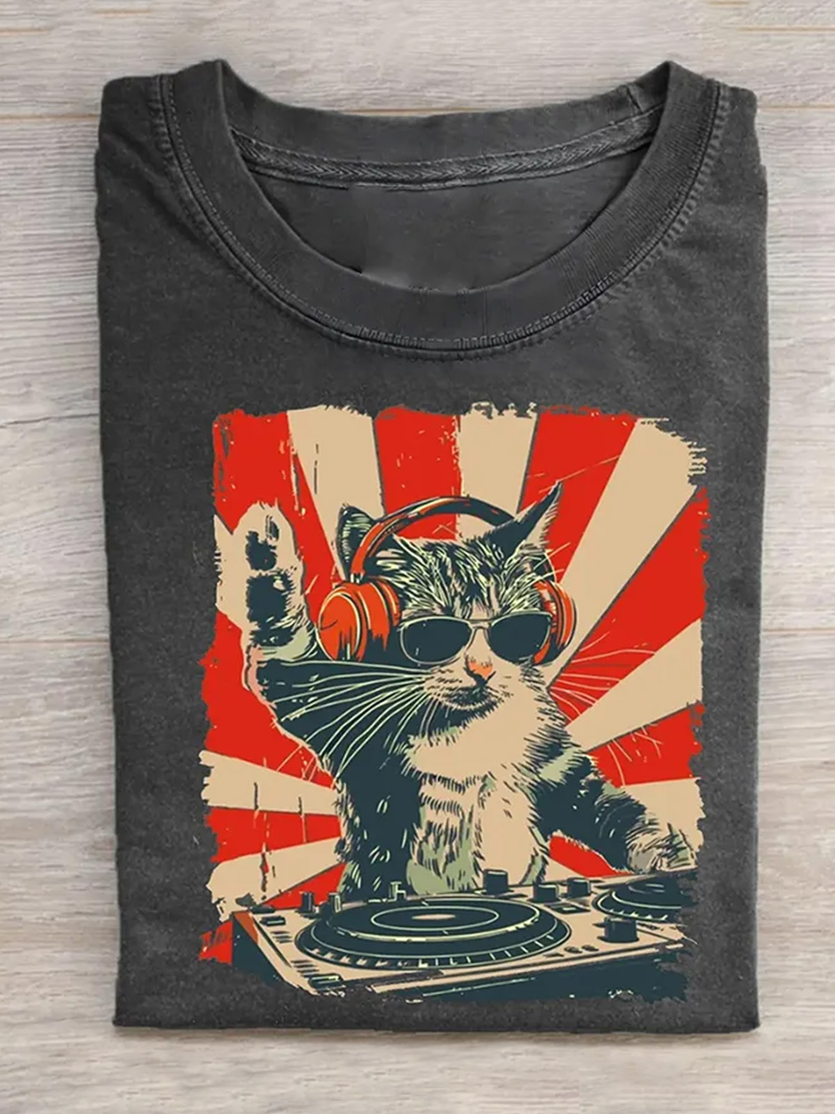 Fun Cat Dj Cotton Short-sleeved T-shirt