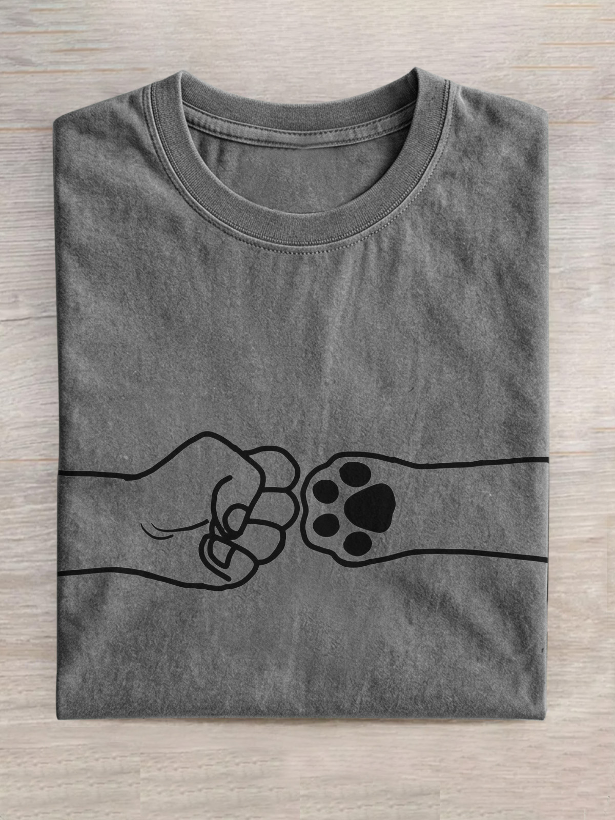 Minimalist Cat Fist Bump Cotton Short-sleeved T-shirt