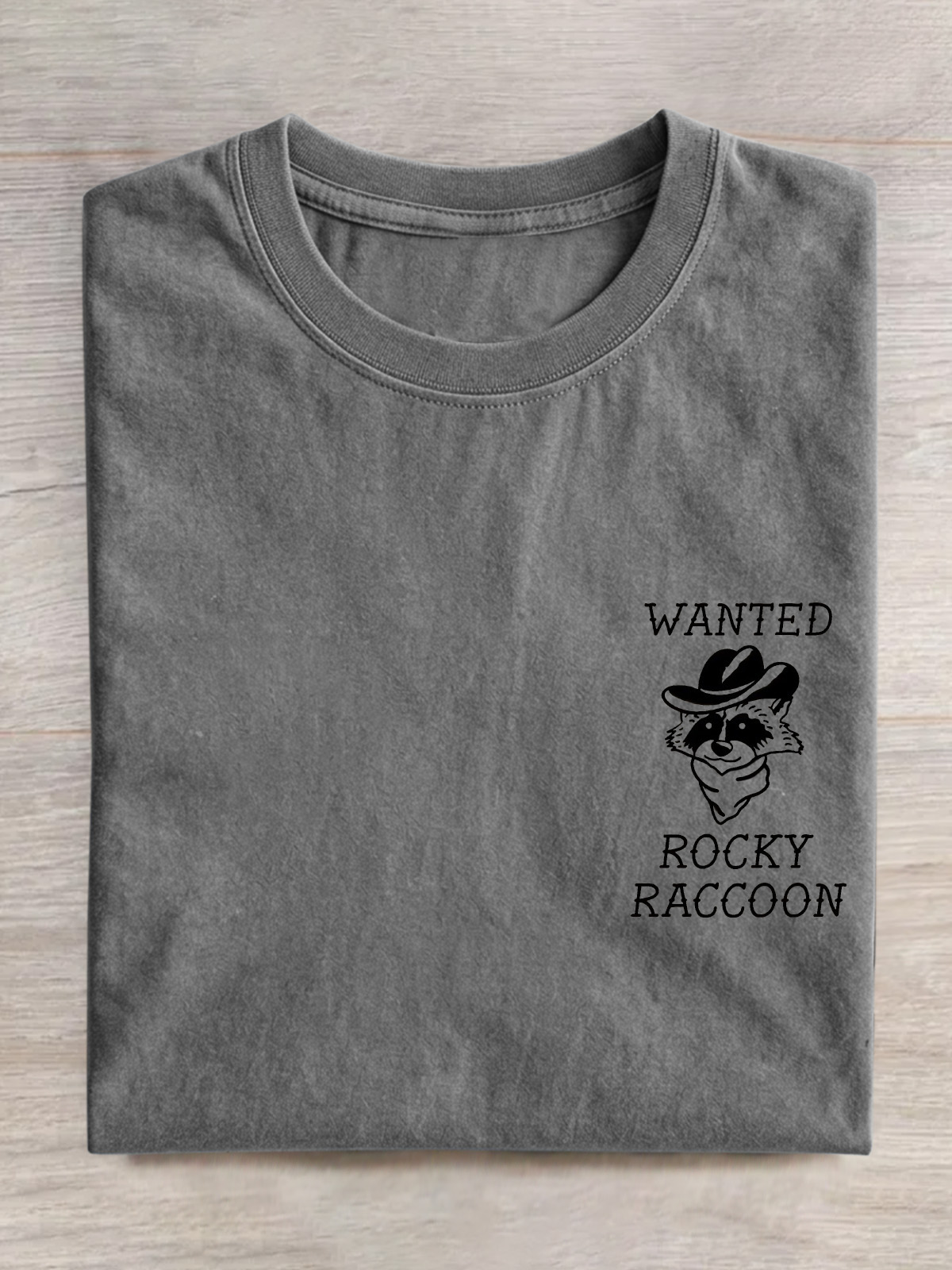 WANTED ROCKY RACCOON Cotton Short-sleeved T-shirt
